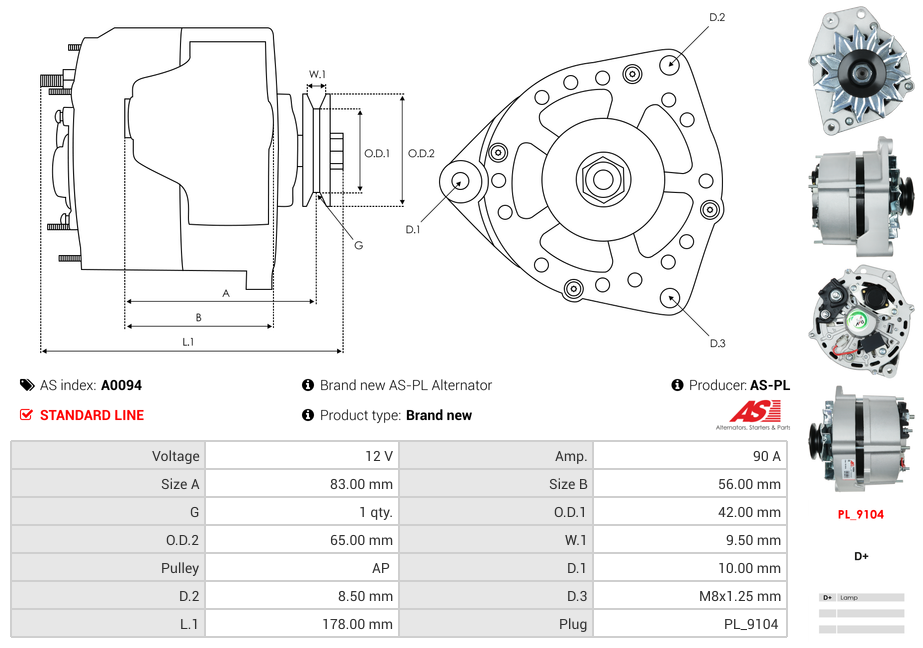 Alternátor A0094 90A