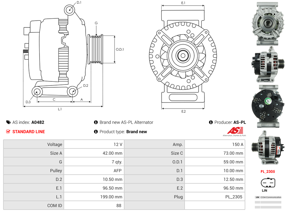 Alternátor A0482 150A