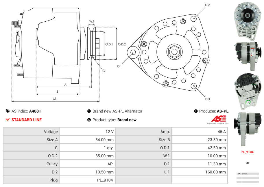 Alternátor A4081 45A